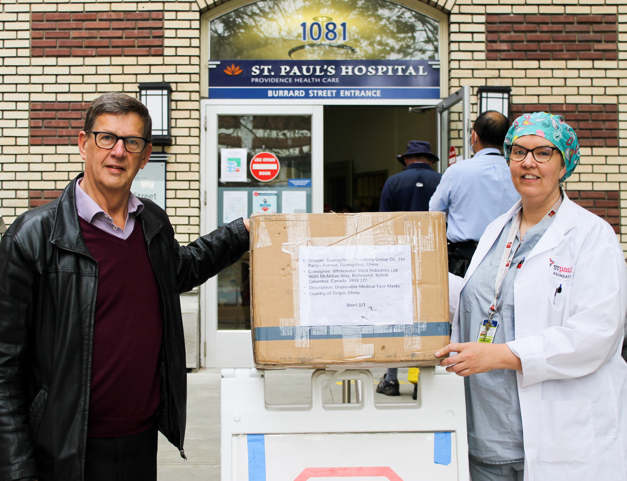 Vancouver, BC—WhiteWater is pleased to be able to facilitate the shipment of 6,000 surgical masks, donated from the Su family, who own Chimelong Group Co., Ltd to St. Paul’s Hospital/Providence Health Care in Vancouver.