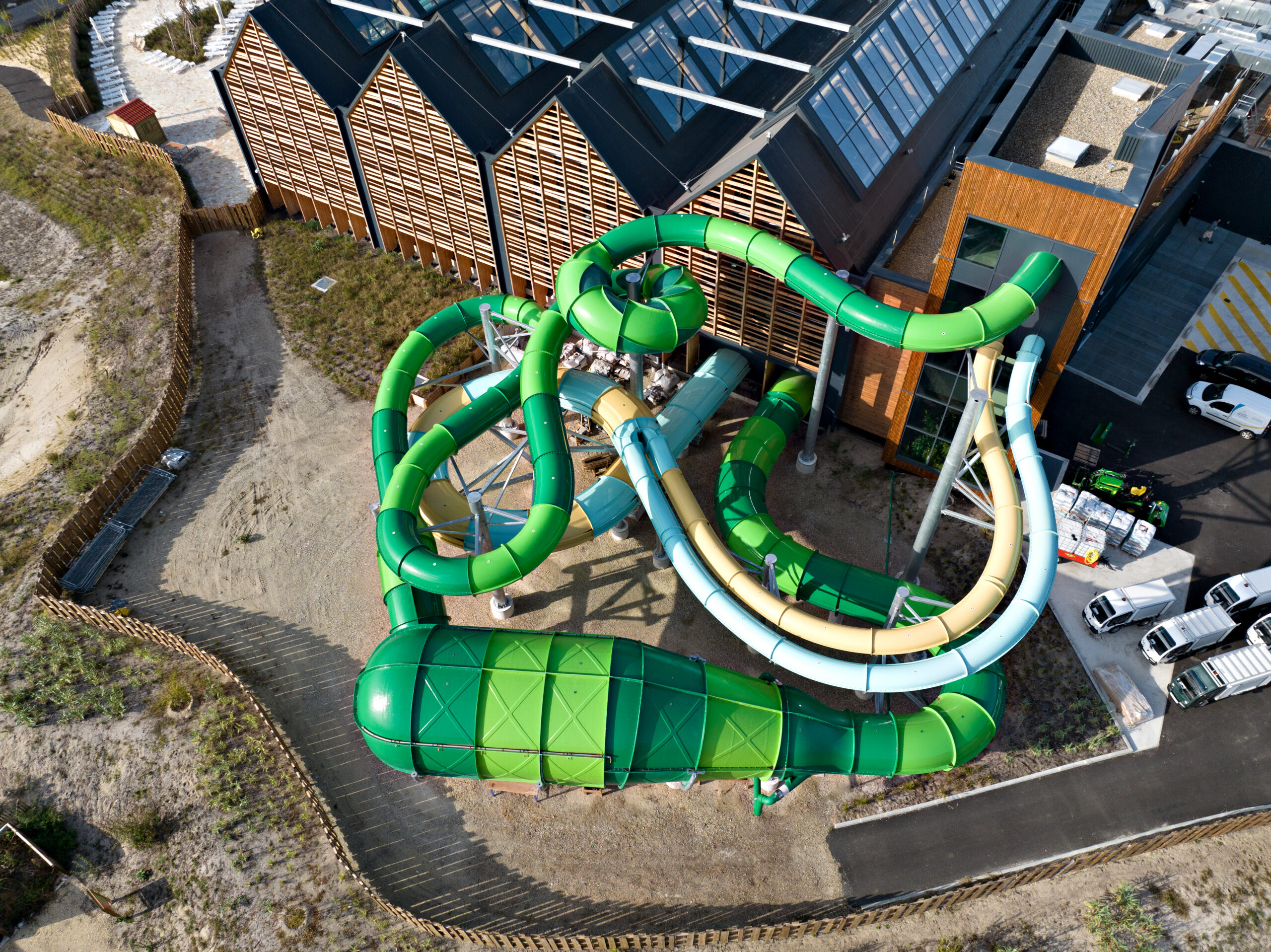 The seventh location to open in France, this expansive 85-hectare Center Parcs site marks WhiteWater’s second project with the Center Parcs brand. This project exclusively features WhiteWater water slides, including Europe’s first Parallel Pursuit and an AquaPlay 750 – all themed to fit the Center Parcs brand of green family leisure. The new resort anticipates around 300,000 yearly visitors, with approximately 500,000 overnight stays.