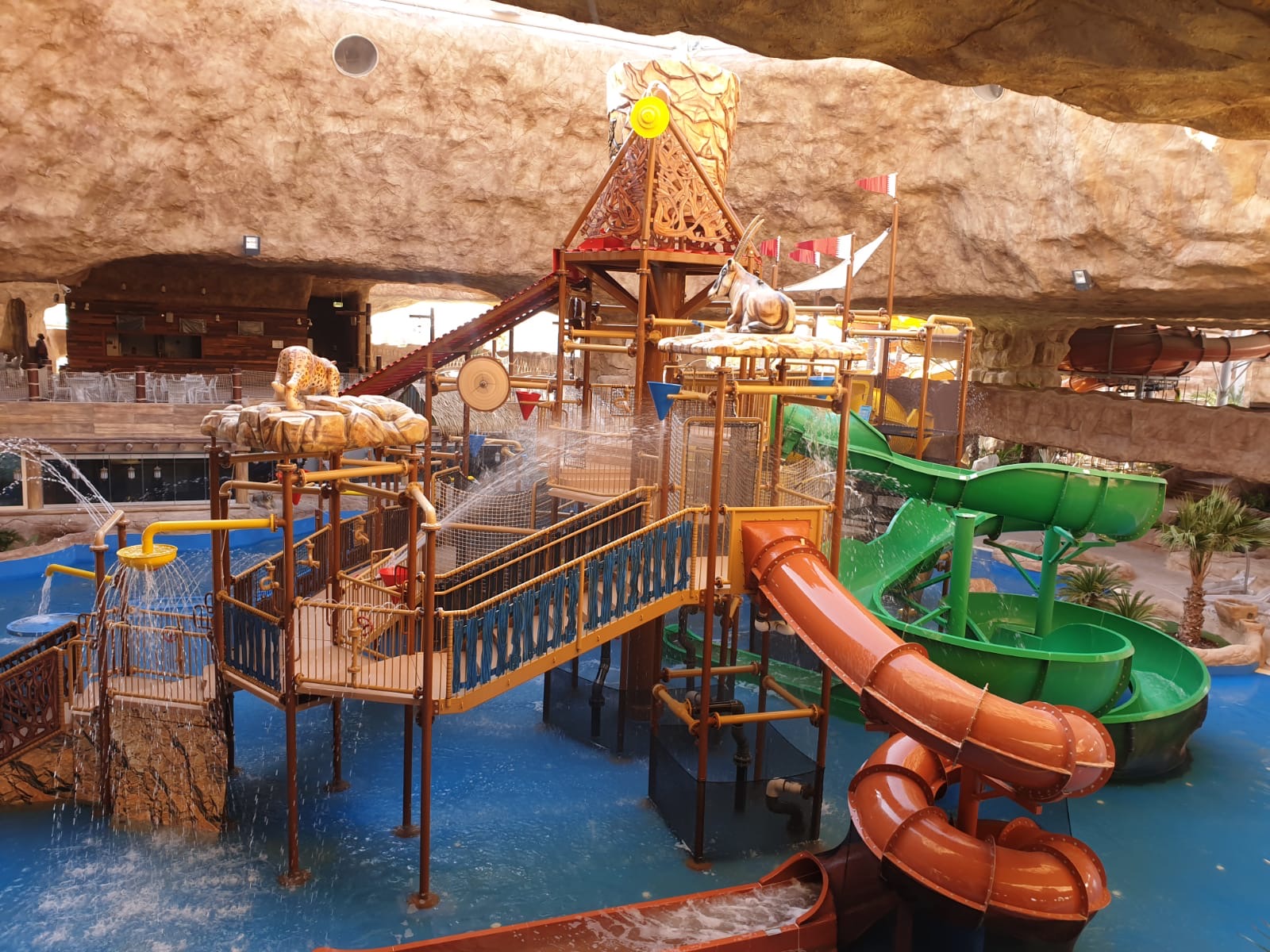 Another standout feature is the AquaPlay 1750, set within a cave-themed environment. Designed as a family-focused interactive play structure, it delivers high guest capacity while integrating a wide range of interactive elements and water effects, immersing guests in a fully engaging aquatic play experience.