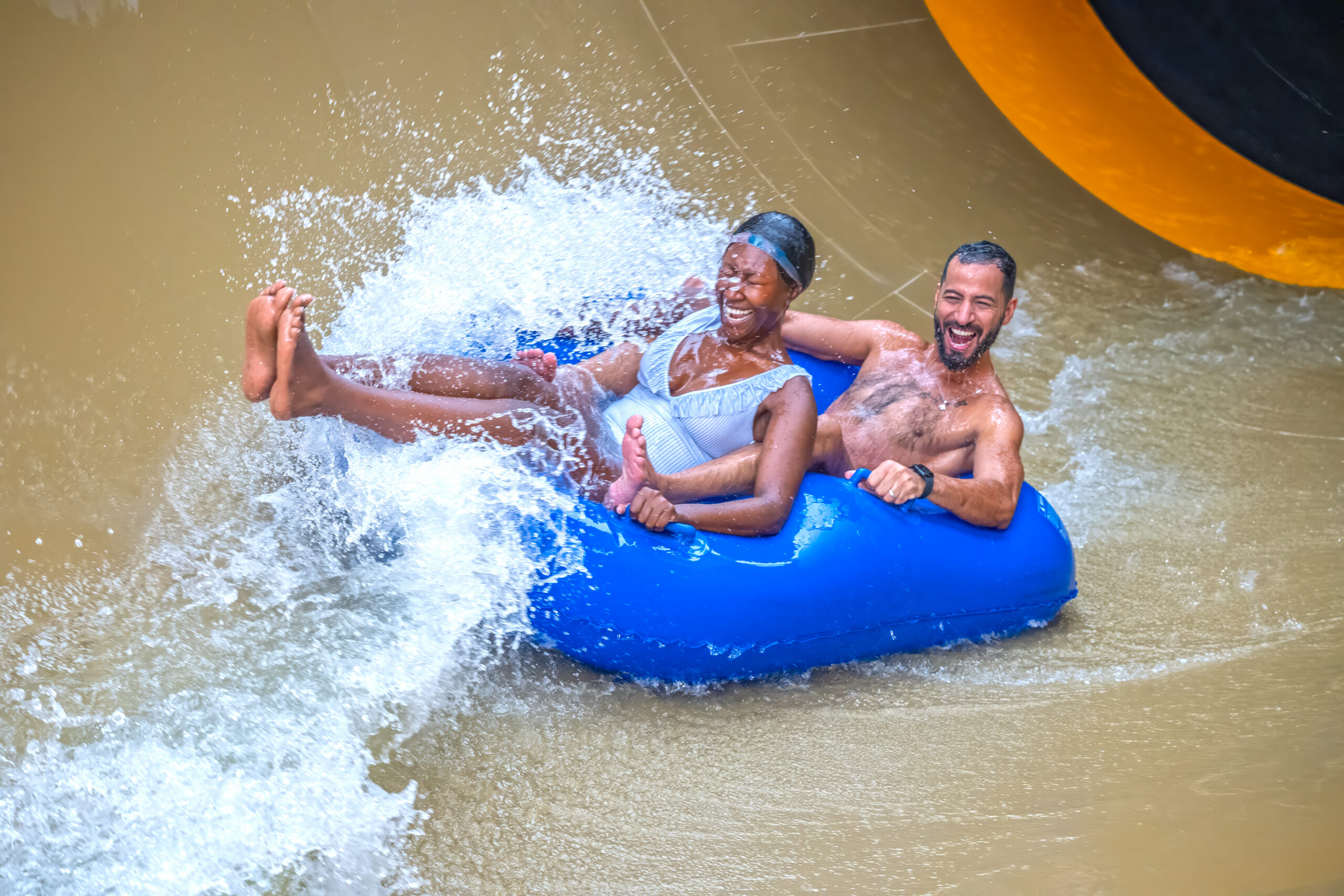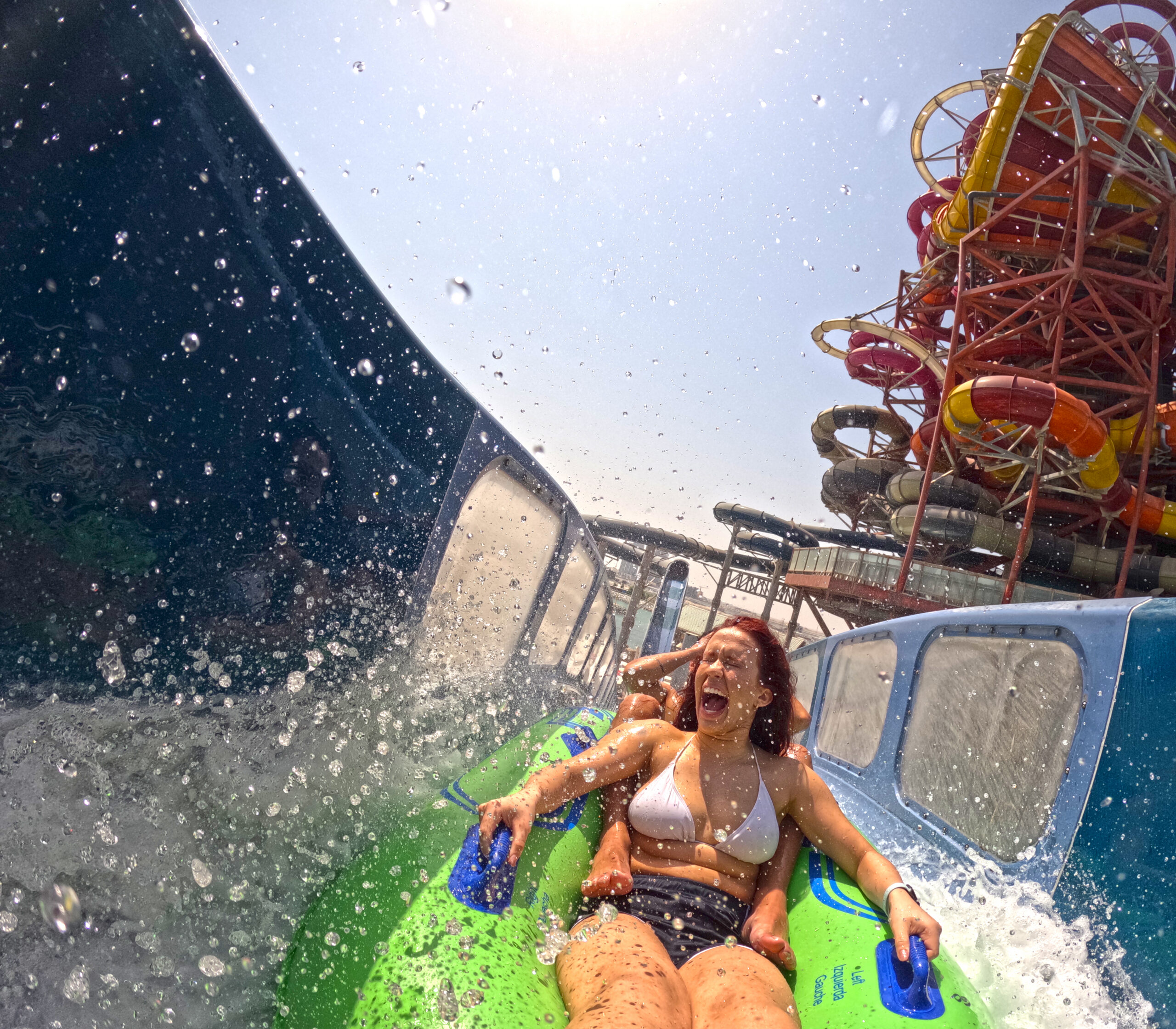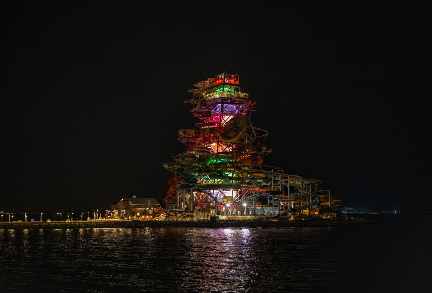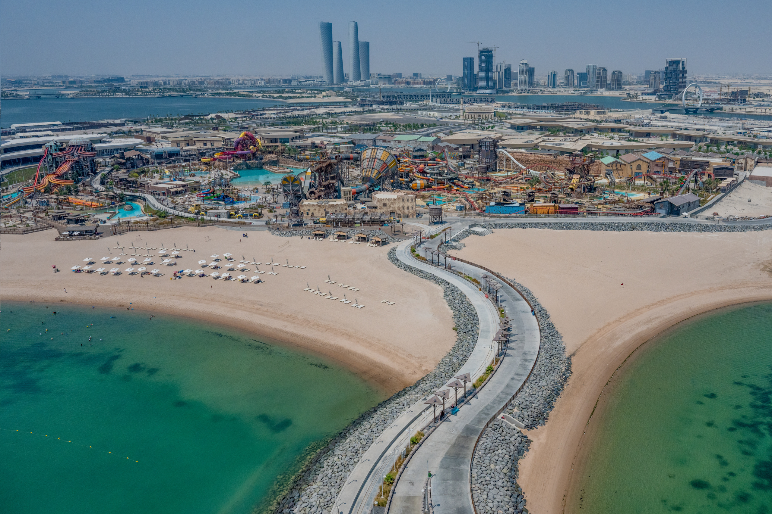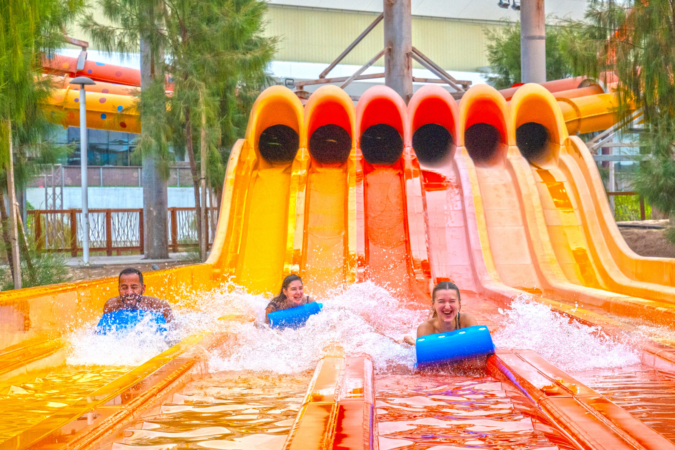 Partnering with Qetaifan Projects, WhiteWater supplied the water attractions for the 280,000+ square meter Meryal Waterpark on Qetaifan Island North. Breaking the world record for the tallest water slide in the world, the park’s Rig 1938 is an incredible 85 meters (260 feet)—just four meters (13 feet) shy of Big Ben. In addition to breaking a world record for the tallest water slide, the Rig 1938 also features the most water slides on a single tower, including an Abyss at 40 meters high.
